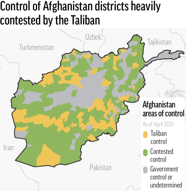 Source: inews.gtimg.com 阿富汗定于今年10月举行议会 选举。伴随选举进入前期准备阶段,阿富汗多地安全形势恶化,阿富汗塔 利班和其他武装团体频繁发动袭击。阿富汗重建特别监察长办公室 上个月说,与一年前相比,塔利班控 制和影响的区域占